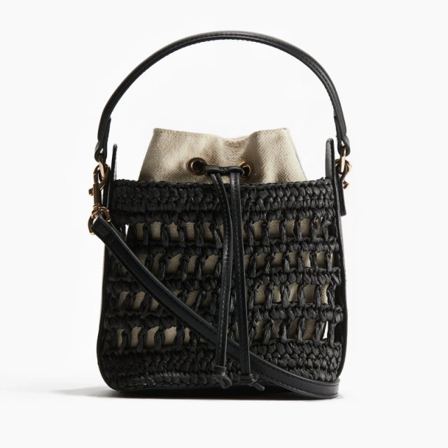 Contrast Canvas Mini Shopper Bucket Bag with Top Handle & Crossbody Strap